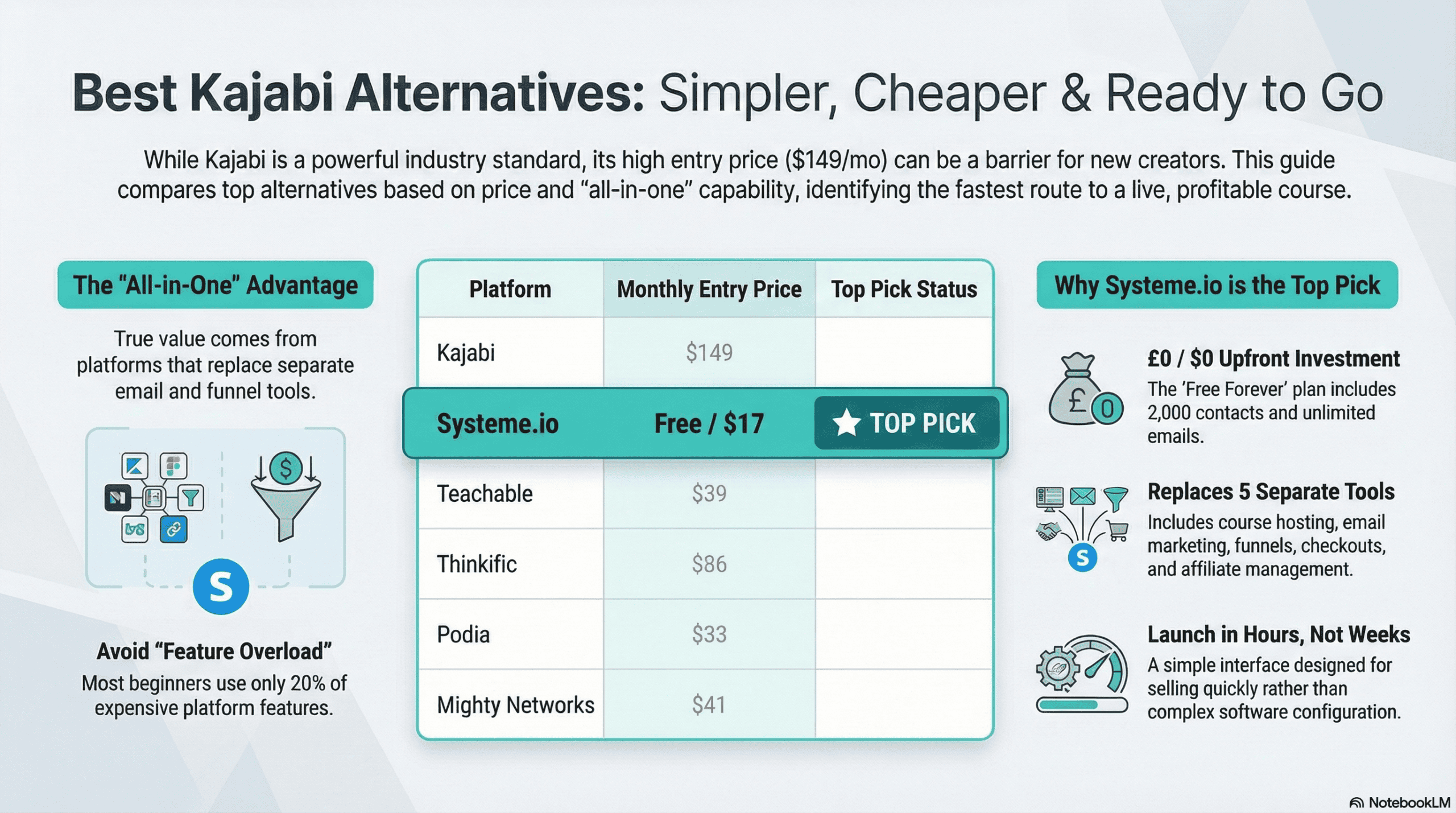 And if you'd like a broader comparison of all the main platforms — Circle.so, Systeme.io, Kajabi, Skool, Mighty Networks, Teachable, Thinkific, Kartra, and Zenler — I've put together a free guide for course creators and coaches that covers what each platform is genuinely suited for, the real total cost at each stage of your business, and how to make the right decision without the expensive guesswork. The guide is available below this article.